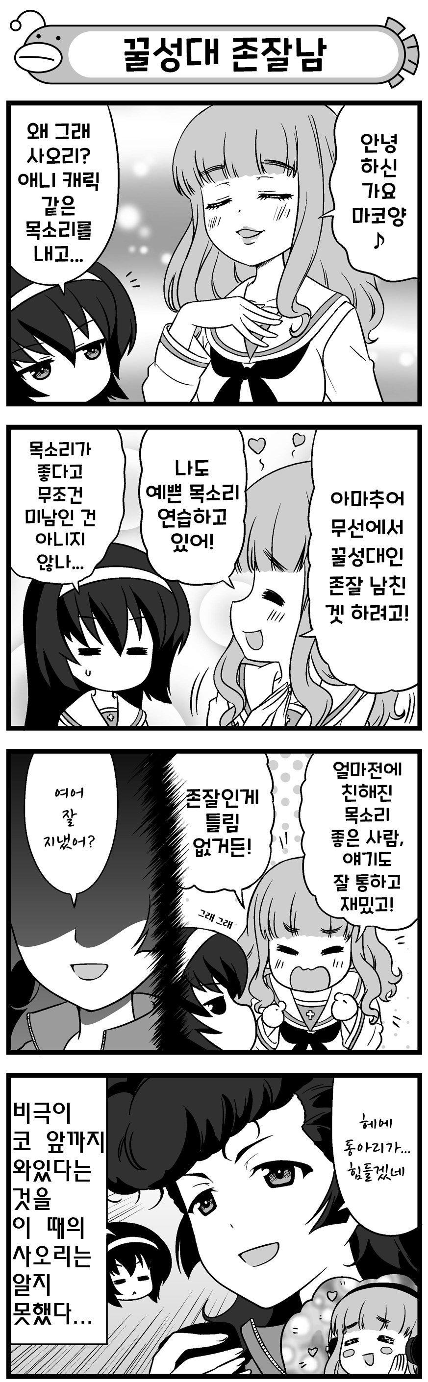[걸판] 좀 더 러브러브 작전입니다! 547화 꿀성대 존잘남 출처 걸즈앤판처 공식홈페이지https://girls-und-panzer-finale.jp/giveout/ 配布コンテンツ|『ガールズ&パンツァー もっとらぶらぶ作戦です!』 WEB出張版|ガールズ& girls-und-panzer-finale.jp 547화 꿀성대 존잘남 일본어는 별 걸 다 줄여서 명사화 해버려서 한국말로 번역할 때 느낌이 딱 들어맞는 말을 찾기가 힘듦. 만화 번역/걸즈앤판처 - 좀더러브러브작전입니다web 2024.07.12