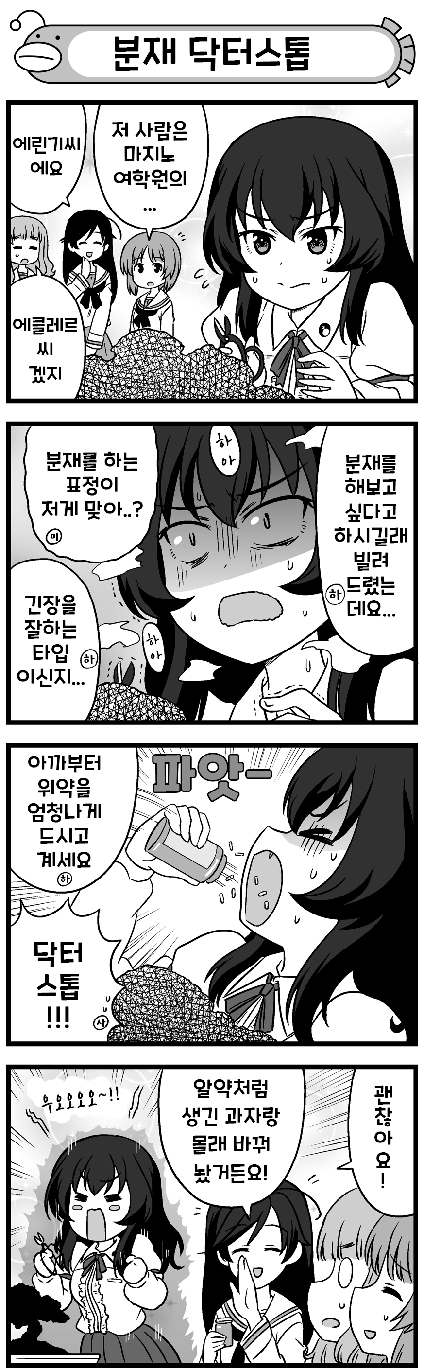 [걸판] 좀 더 러브러브 작전입니다! 555화 분재 닥터스톱 출처 : 걸즈앤판처 최종장 공식 홈페이지https://girls-und-panzer-finale.jp/giveout/ 配布コンテンツ|『ガールズ&パンツァー もっとらぶらぶ作戦です!』 WEB出張版|ガールズ& girls-und-panzer-finale.jp 555화 분재 닥터스톱 에린기 : 일본어로 새송이버섯 닥터스톱 : 격투기에서 의사가 선수 부상에 대해 진행 불가 판단을 내리고 중단시키는 거 분재 : 화분에 (주로 소나무) 식물 가꾸기 만화 번역/걸즈앤판처 - 좀더러브러브작전입니다web 2024.08.23